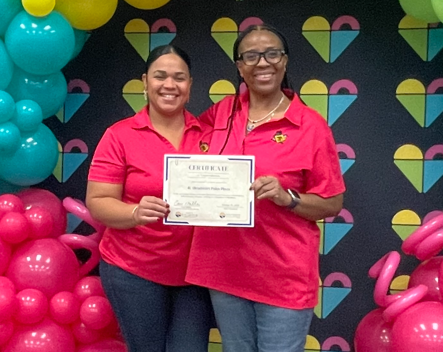 At a recent ceremony, the ELC honored 55 early learning programs in Osceola County for their outstanding classroom performance. Teachers Nicole Fenn and Raisa Santana from Palm Plaza VPK were on hand to accept the certificate.